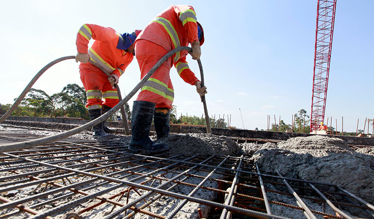 Att vara betongare kan vara fysiskt krävande, men arbetet underlättas av hjälpmedel i form av t.ex. byggkranar och betongpumpar.